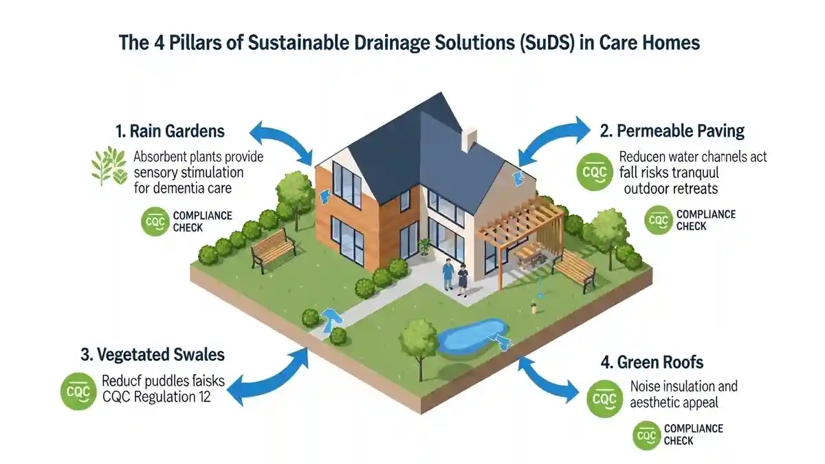 The future of sustainable drainage solutions CQC care home design is the integration of SuDS (Sustainable Drainage Systems). In Putney, Policy EN18 of the Local Plan encourages SuDS to manage surface water runoff, which often plagues the surrounding area.